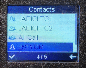 DMR Service のDMRコンタクトにあらかじめ被制御端末のDevice ID(Radio ID)とコールサインを登録しておくと便利です。 登録が無い場合はプライベートコールとして都度Device IDを入力する必要があります。
